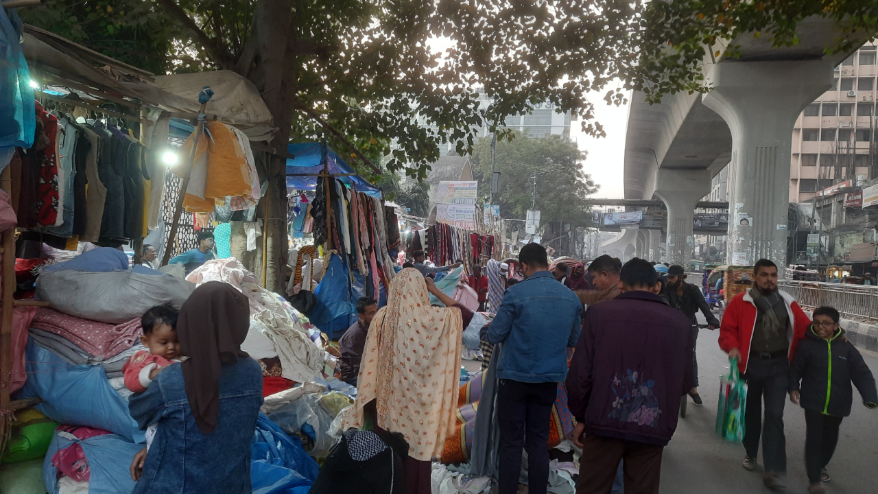 তীব্র শীতে ঢাকার ফুটপাতে গরম পোশাকের রমরমা বেচাকেনা